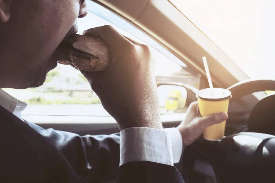 Možná si myslíte, že malé občerstvení během řízení je nevinné. Pravda ale je, že i po několika letech v redakci se stále setkávám s případy, které dokazují opak. Jakkoliv není v Česku samotné jezení nebo pití za volantem v zákoně zakázané, rozptylování tímto způsobem může snadno vést nejen k tučné pokutě, ale i k problémům s pojišťovnou, pokud dojde k nehodě.